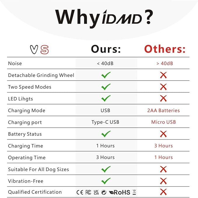 • 2. Low noise and vibration: It features low noise and vibration technology to help reduce your pet’s fear and anxiety, making the trimming process more tolerable.