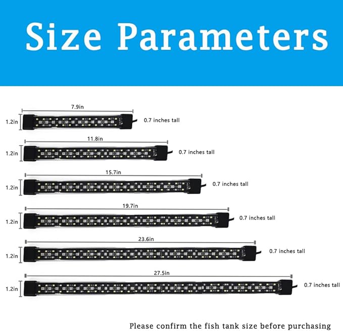 - [Simulating 24/7 Natural Light Cycle&Timing Setting]24/7 Cycle Mode Fish Tank Light]Full Spectrum Fish Tank Light with Timer Can Auto On/Off,and our aquarium light with controller has lighting modes that simulate sunrise to sunset,adjustable brightness,color changing modes,timing functions(6 hours,10 hours and 12 hours).Note that the fish light needs to be connected to an air pump of sufficient power to produce bubbles (the air pump is purchased separately)