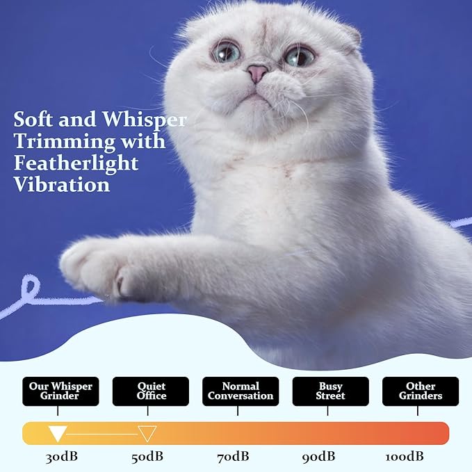 - 【Low-Noise Design】The Grind for Pet nail grinder operates at less than 40 dB, significantly reducing the noise that can cause anxiety and stress in pets during nail trimming
