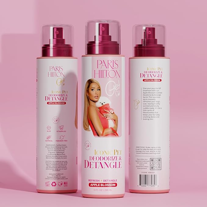 Paris Hilton Dog Perfume, Deodorizer & Detangler | Odor Neutralizing with Sweet Floral Apple Blossom Scent - Sulfate-Free, Vegan, Hypoallergenic for All Pet Breeds 10oz/295ml