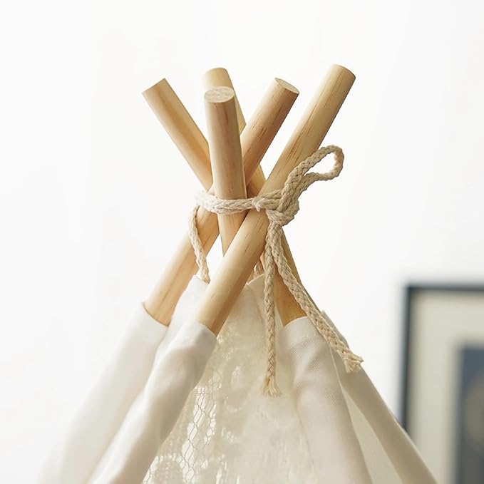 Dog and Cat Teepee Tent Bed - Portable Indoor Pet House for Small Dogs With Cozy Cushion - Removable & Washable - Bunny Tent Outdoor (White Lace, M)