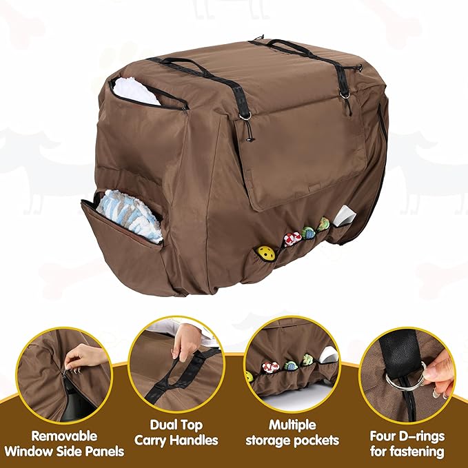 - 【Breathable Structure】:Adjustable closures at the cover's seam for added ventilation; the window at front and back of crate cover can roll up and tie at all sides for added visibility.