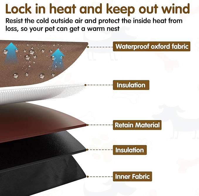 - 【Keeping Dogs Warm in Winter】:Made of heavy duty 600D Oxford fabric with waterproof fabric coating, windproof, soundproof and UV resistant. Filled with thick polyester fiber to keep warm and windproof, creating a warm nest for your dog.