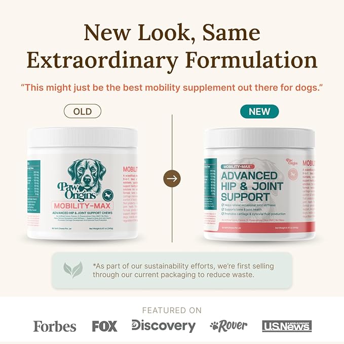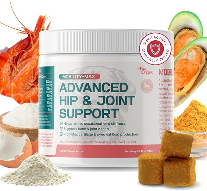Paw Origins Mobility Max Joint Supplement for Dogs – 9-in-1 Blend with Glucosamine, Chondroitin, MSM & Vitamin C – Natural Bacon Flavor – Premium USA-Made Daily Formula for Active & Senior Pets