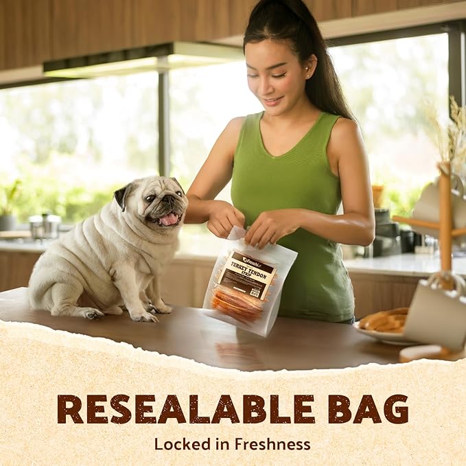 - Natural Dental Care: Promote your dog's oral health with every chew. Our turkey tendons help to reduce plaque and tartar buildup naturally, leading to fresher breath, healthier gums, and a brighter smile. It's a delicious way to support your dog's dental hygiene.