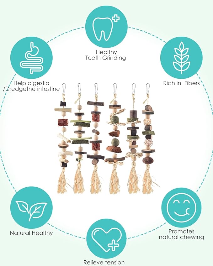 - Multiple Benefits: These chew toys for chinchilla easily attract your pets to play and exercise, satisfying their natural needs and enriching their daily activities. They allow rabbits and other small animals to release their energy through chewing and playing, preventing them from chewing on cages and furniture, and keeping them physically and mentally healthy