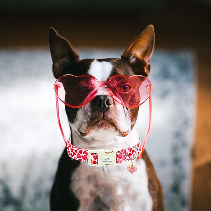 Lionheart glory Valentine's Day Collar, Red Hearts Dog Collar for X-Small Cute Dog Collars Spring Female Pet Gift Adjustable Heavy-Duty Puppy Collar Plastic Buckle