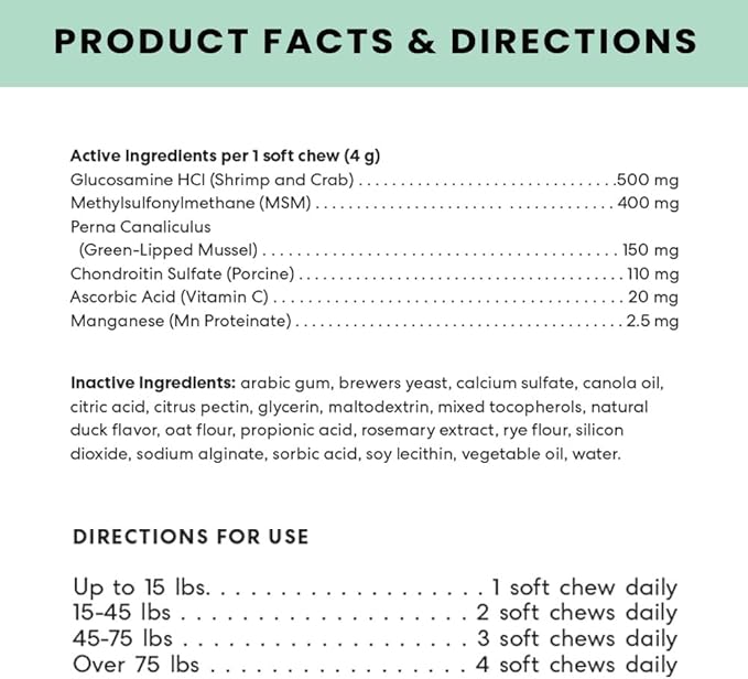 • Delicious Duck Flavor Your Dog Will Love - Your pup will enjoy a tasty duck flavor that makes taking their joint supplement a treat rather than a chore, ensuring they get the support they need without any fuss. This is a dog hip and joint supplement for large breed and small breeds alike