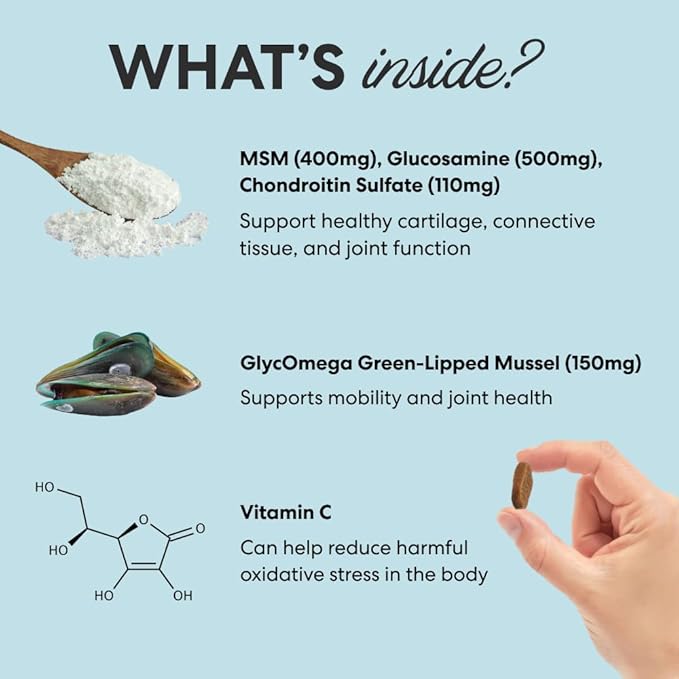 • Powerful Joint Health Benefits - Formulated with 150mg of GlycOmega Green-Lipped Mussel and 400mg of MSM that support mobility