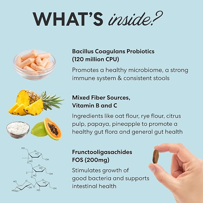 • Optimal Gut Health Support - Contains 120 million CPU of Bacillus coagulans probiotics to support immune health and more consistent stools