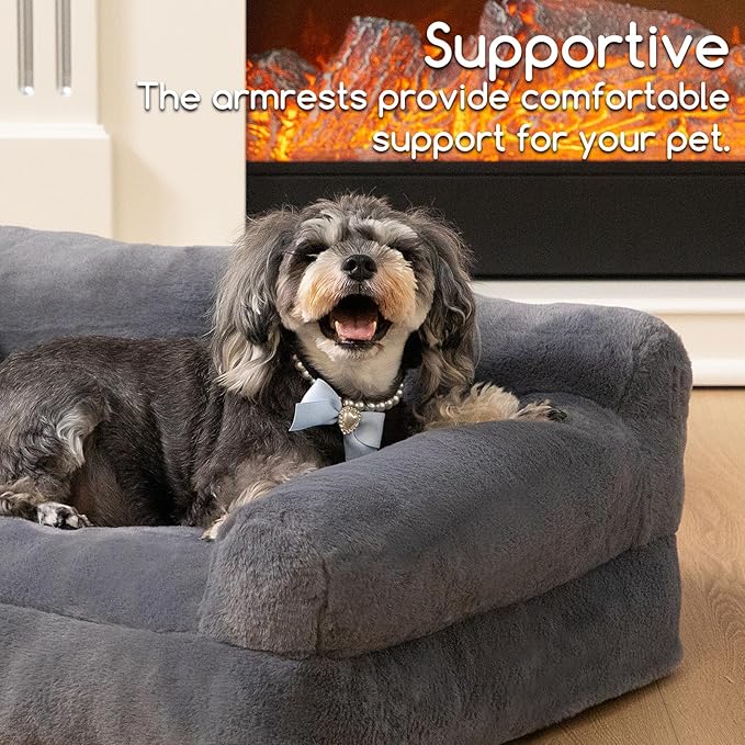 Hollypet Fluffy Plush Dog Cat Pet Couch Soft Calming Sofa Bed for Medium Small Cats and Dogs, Gray, M