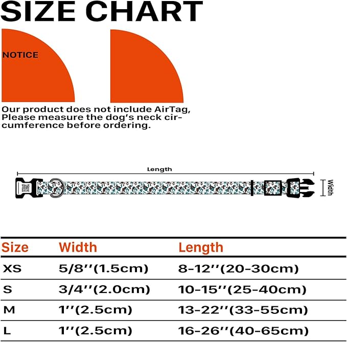 • Adjustable Wide Range of Sizes: XS: 5/8"W, Length 8"-12"; S: 3/4"W, Length 10"-15"; M: 1"W, Length 13"-22"; L: 1"W, Length 16"-26", Please measure the circumference of your dog's neck before purchasing