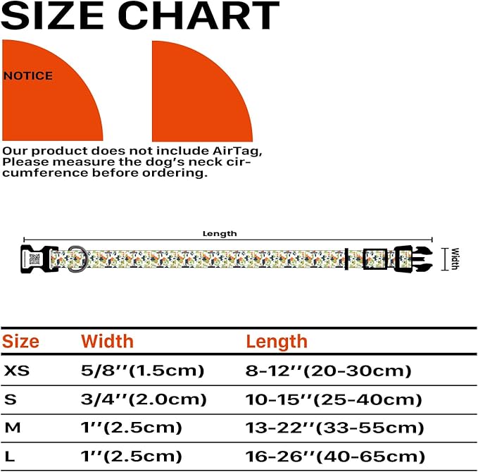 • Adjustable Wide Range of Sizes: XS: 5/8"W, Length 8"-12"; S: 3/4"W, Length 10"-15"; M: 1"W, Length 13"-22"; L: 1"W, Length 16"-26", Please measure the circumference of your dog's neck before purchasing