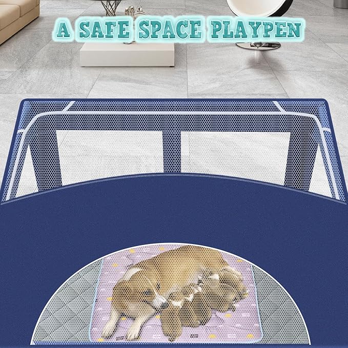 - 『DESIGNED FOR YOUR PET』➞ Our fence adopts non-capping design, which is convenient for the owner to carry the dog in and out, the open fence is more spacious and breathable space for the dog, surrounded by mesh fabric, which is convenient for the owner to see his beloved pets at any time and from any angle, and the Upward rolling door design is convenient for the dog to enter and exit the door.