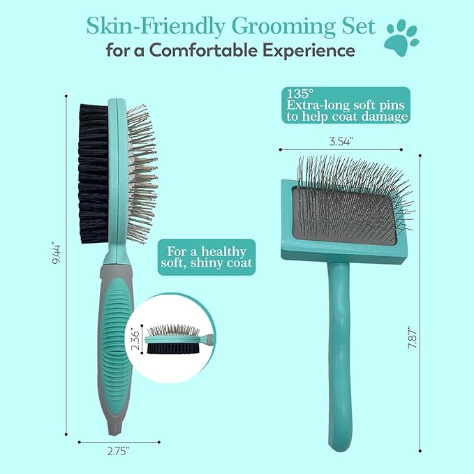 • 🐾 Remove Tangles, Knots & Mats: Our Slicker Brush removes mats, tangles, and loose fur. Comfort glide pins ensure a gentle experience, making it ideal for pets that shed heavily while keeping their coat healthy and shiny