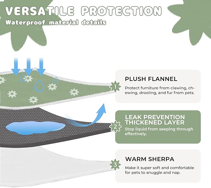 - Waterproof & Leakproof Blanket: Our waterproof dog blanket features an internal lining that provides excellent defense against liquids, ensuring your pet and furniture remain dry and clean. Ideal for dogs, cats, and kittens, this pet blanket is perfect for both indoor and outdoor use, guaranteeing your pet's comfort when use this cute blanket.