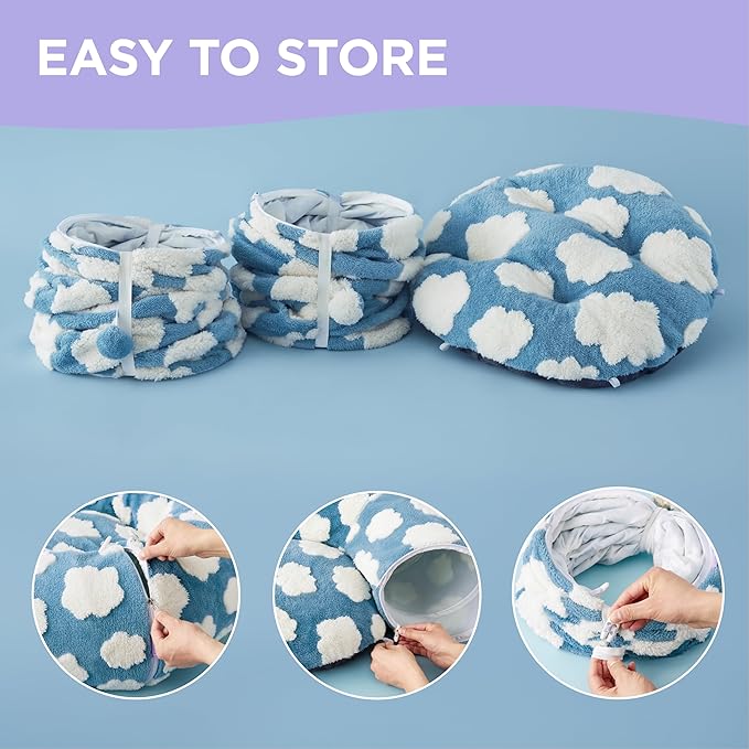 Lesure Large Cat Tunnel Bed - Cute Donut Bed for Indoor Cats with Washable Circle Cushion, Round Pet Peekaboo Cave Toy for Multi Kitten/Puppy/Rabbit, Large Blue