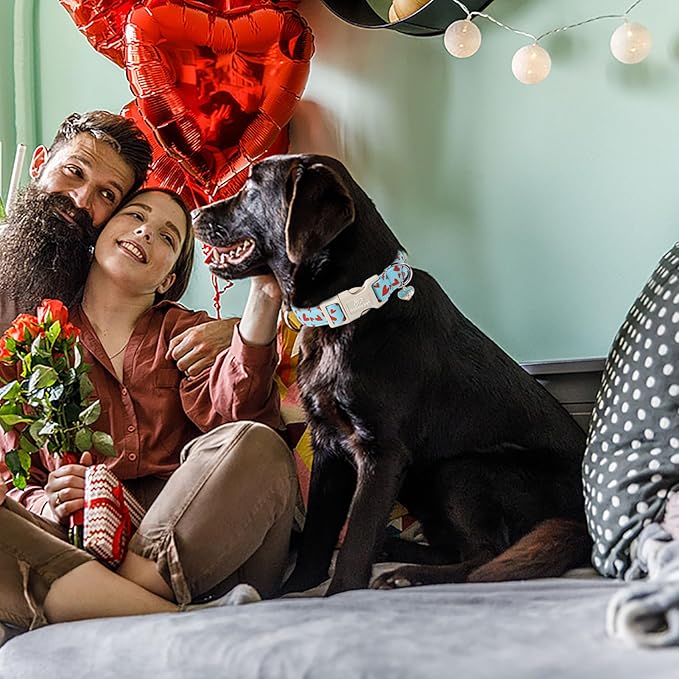 - Cute Valentines Day Themed Dog Collar: The collar features a high-quality abrasion-resistant cotton polyester fabric that is comfortable and durable. It is the perfect accessory for walks, playtime, or special occasions without causing any irritation to your dog's skin