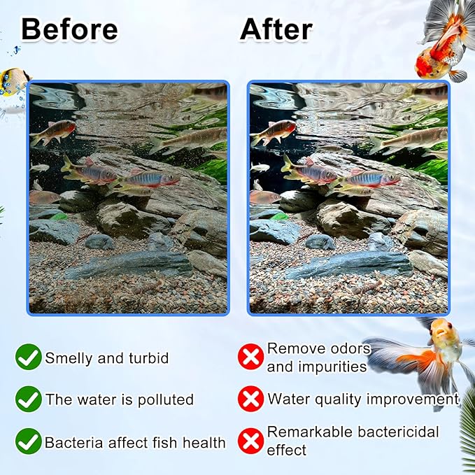 - 【New Filter Medium - Zeolite】: Our zeolite is a reprocessed zeolite. Our spherical zeolite has a stronger cleaning ability, and it can adsorb heavy metals and other harmful ingredients. Balance PH to achieve a stable water state and improve the efficiency of fertilization of aquatic plants