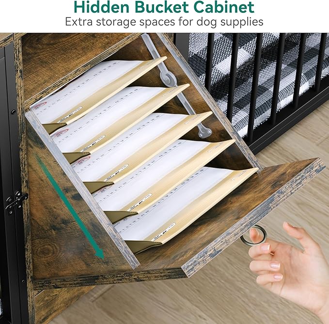 - Pull Out Dog Bowls: The bottom drawer comes with double stainless steel food bowls that can be pulled out when feeding and can also be hidden to save space. The diameter of the Bowl is 7.3 inch, big enogh even for large dogs