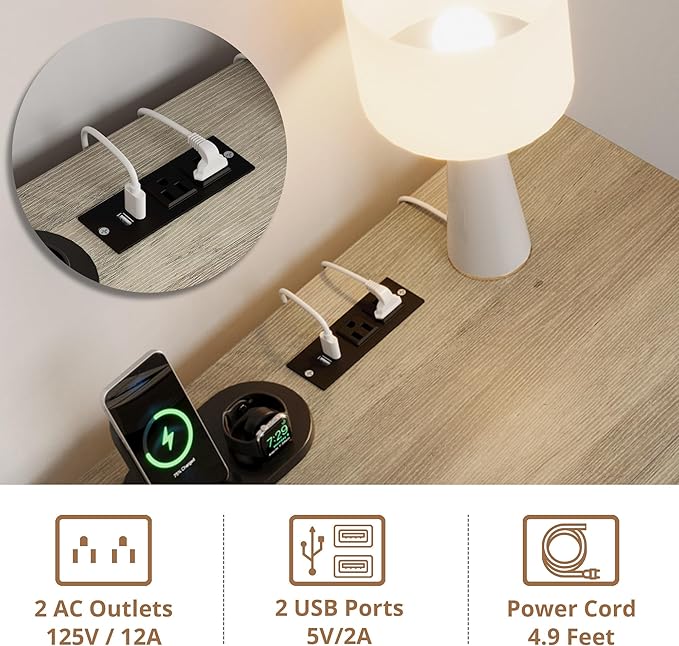 - CHARGING STATION & STORAGE: The top panel features a power strip with 2 USB ports and 2 AC outlets for charging your phones or your dog's electronic toys. The tabletop can hold a lamp, while the flip-top drawer keeps toys, accessories, and pet essentials organized and within reach