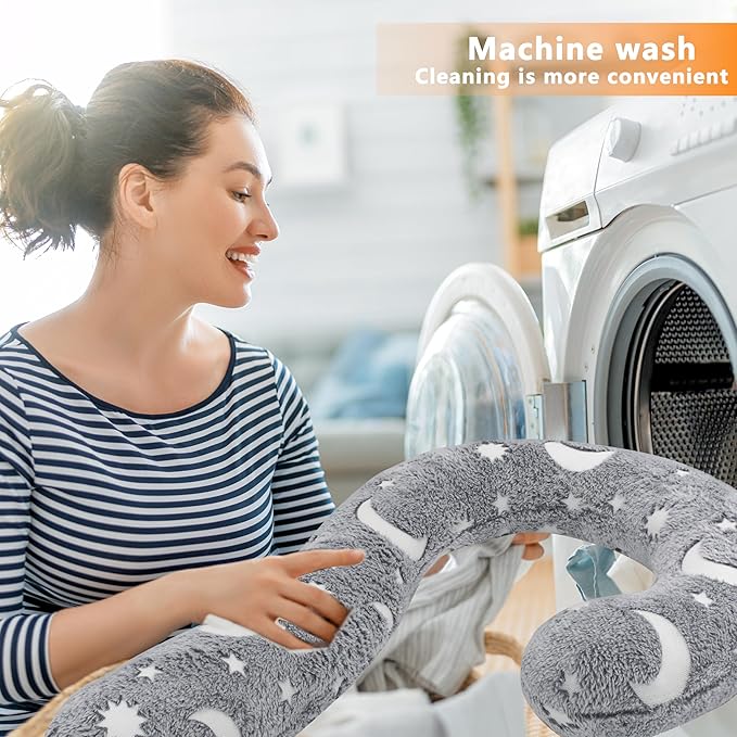 Pet Calming Pillow for Dogs, Soft U-Shaped Pillow Glow in The Dark, Joint Relief, Sleep Comfortably,Suit for Small, Medium, Large Dogs, Fluffy Pet Neck Pillow (L-Gray)