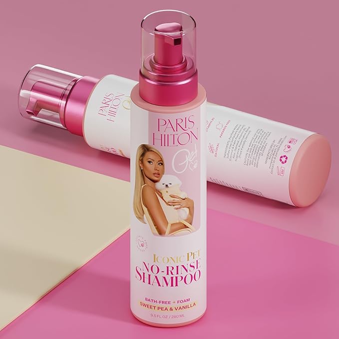 Paris Hilton Pet Iconic Sweet Pea & Vanilla Scent No-Rinse Dog Shampoo, Waterless Dog Wash, Hypoallergenic, 280ml Quick Clean for Dogs, Easy Grooming, No Rinse Needed