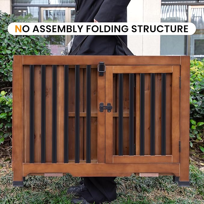- No Assembly &Portable:Compared with other dog crates that are complicated to install.Our dog cage furniture is designed with a Foldable structure and can be installed in just 30 seconds. Saves you time and effort.