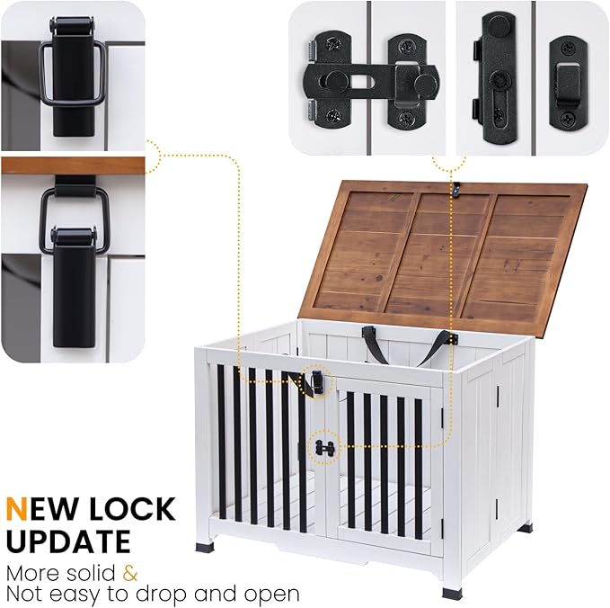 - Solid Wood Dog Crate:Made of high quality solid wood and thickened iron pipe,the large dog crate furniture is sturdy and chewable,providing health protection for your dog.The top of the dog crate table holds pet supplies and other decors.