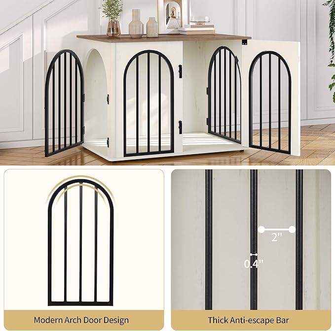 - Unique Arch Door: Our furniture dog crate adopts a novel arch design, which blends in with many modern furniture styles. The and elegant style of the arch creates a clean, tidy and comfortable living environment for you