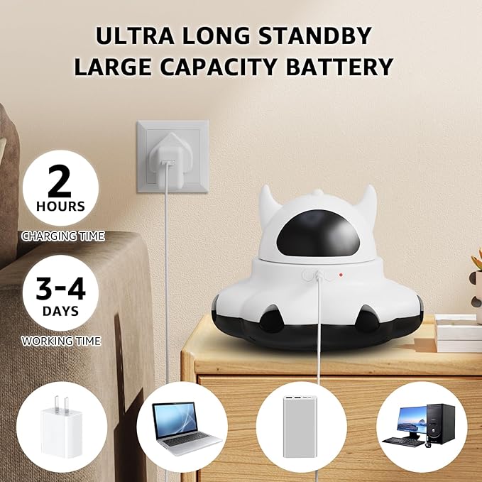 • USB-C Rechargeable: Cat laser toy Using the USB-C fast charging interface, it only takes 2 hours to fully charge. Usually, it can be on standby for 3-4 days