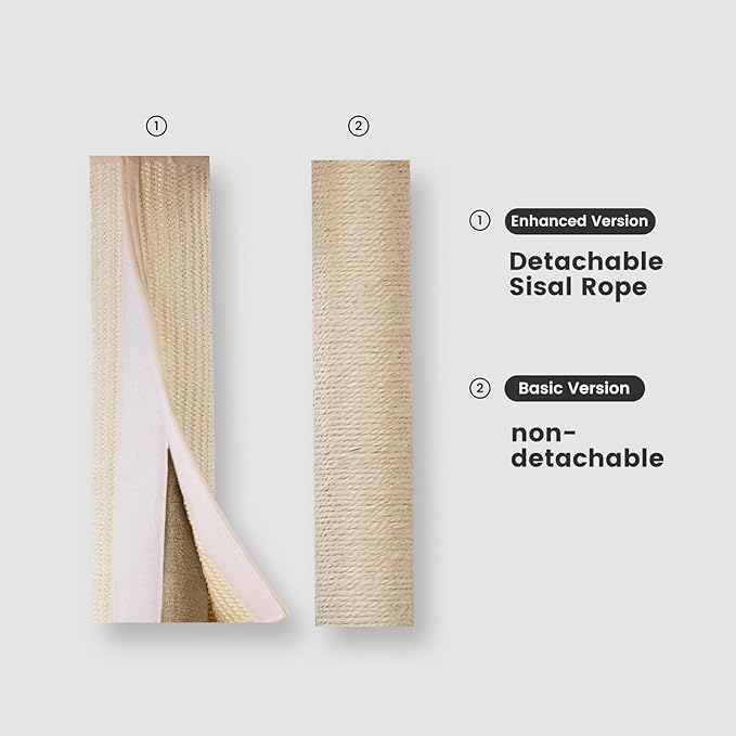- [Safe & Durable Materials | Pet-Approved] 🌿Eco-Friendly MDF Board: High-density, warp-resistant, for long-lasting safety. ✋ Natural Sisal Wrapped Posts: Protects furniture while satisfying cats' scratching instincts.