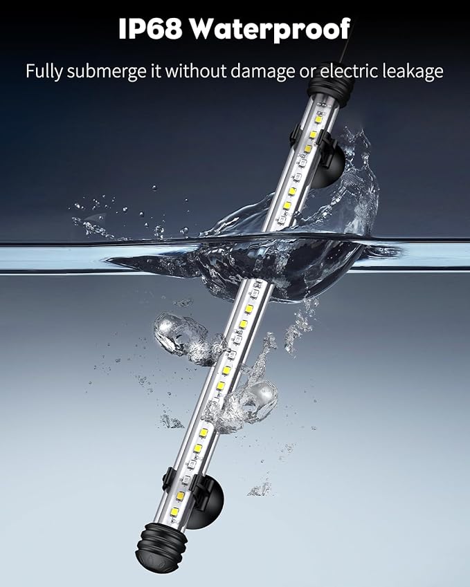 - Auto On/Off: With a built-in timer, the submersible aquarium tube light provides 3 optional lighting durations: 8 h, 10 h and 12 h (Only work during the first 8, 10 or 12 hours within 24 hours). Perfect for creating a natural environment.