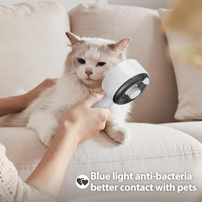 - 【Misting Feature】Our misting feature, which sprays at the same time as grooming, reduces static and flyaway hairs for a comfortable, smooth grooming process. This helps minimize tangling and knotting problems. You can add conditioner or softener to the spray to enhance the softness and shine of your cat's coat. 【Note】Our cat brush only converts water into spray and does not heat it.