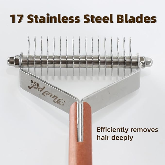 - 17 teeth side for thinning and deshedding. Achieve faster and more professional dematting and grooming results