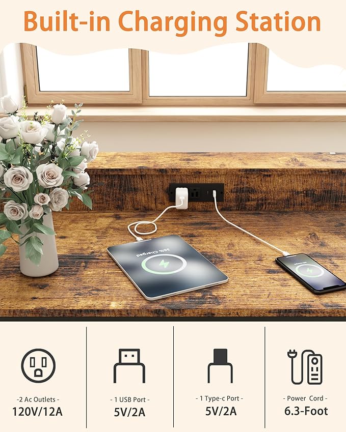- 【Built-in 4in1 Charging Station】Equipped with 2 AC Outlets 120V/12A with 1 USB Port and 1 Type-C Port for fast charging. The built-in charging port makes it easy for pet owners to charge their cell phones, tablets, pet trackers, and other devices without the need for additional charging devices or searching for an outlet, increasing the convenience of life. The dog crate serves as a private space for pets, and the built-in charging port allows pet owners to charge near their pets, increasing the amount of time spent with their pets and helping to enhance their comfort and sense of security.