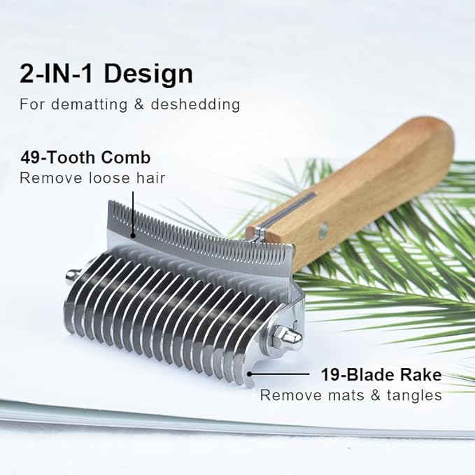 - EFFECTIVE SHEDDING & DEMATTING: Specially designed to tackle shedding and dematting, this comb is perfect for breeds like German Shepherds. It's an essential tool for pet hair removal and maintaining a healthy coat