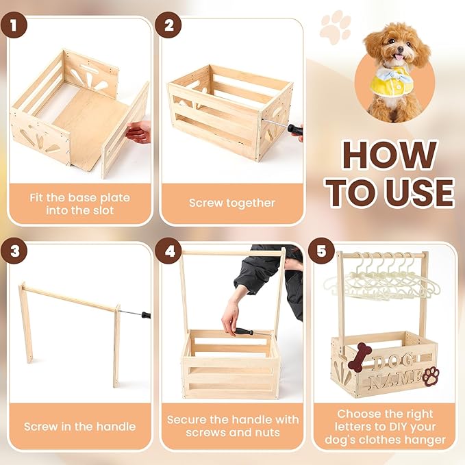 - Reliable Material: our dog clothes rack is made of pine wood, not only is it sturdy, but the charming hollow pattern adds a touch of rustic charm to it, it blends seamlessly with your furniture and is an attractive dog wardrobe choice