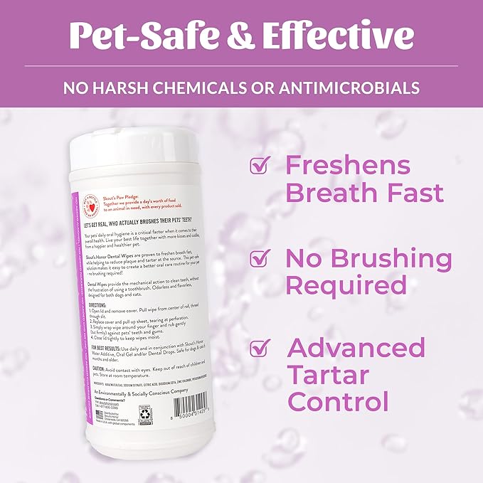 • Fights Plaque and Tartar - Skout's Honor Pet Dental Wipes help reduce plaque and tartar at the source, ensuring your pet's teeth stay clean and healthy.