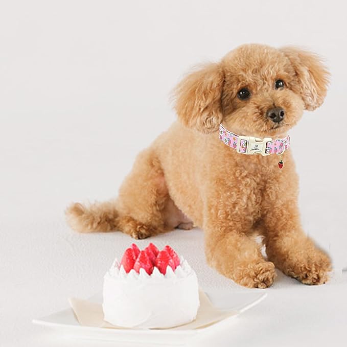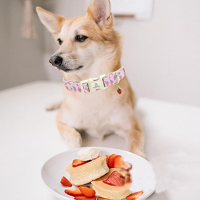 Lionheart glory Dog Collar Strawberries Print Pink Dog Collars Girl Spring Summer Cute Collar Pet Gift Durable Adjustable Dog Collar for Small Dogs