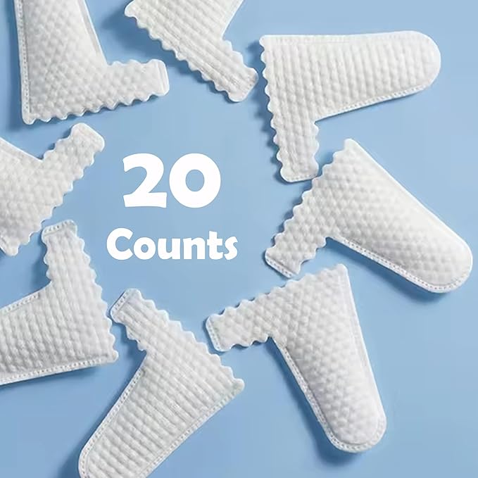 • Secure Finger Design: Features a second finger ring for a secure fit, preventing slipping during use. One size fits all. Pack includes 20 disposable wipes.