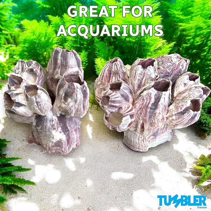 - Natural Barnacle Cluster for Decor: Each barnacle cluster in this 2 Pack measures about 3 to 5 inches and features real purple and ivory tones. Naturally formed, these clusters make standout pieces for aquarium ornaments and decor or coastal-inspired settings. No two are alike, offering a rustic yet elegant aesthetic ideal for marine-themed environments.