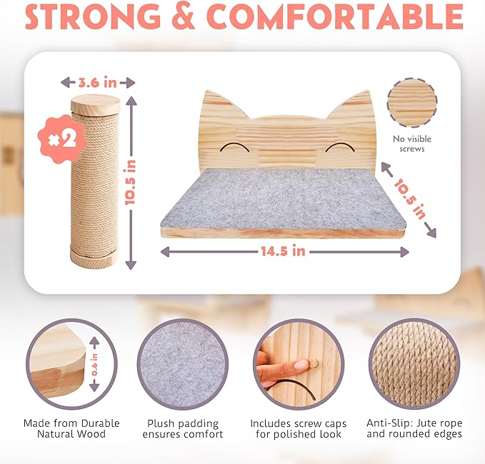 - STURDY PINEWOOD CONSTRUCTION: Crafted from durable, dried pine wood for reliable support and long-lasting use, even for large cats.