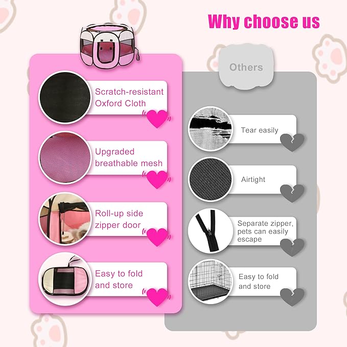 Cat Playpen Indoor, Portable Pet Play Pen for Outdoor Cat, Pink Kitten Birthing Box Exercise Playpen Tent, Waterproof Travel Dog House Kennel Camping Cage for Small Dog Animal House