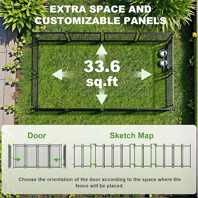 - Sturdy and Durable: Our dog kennel outdoor is constructed with high tensile-strength wire gauge, metal frame and ground anchors, ensuring it withstands the elements and provides a safe haven for your furry friend.