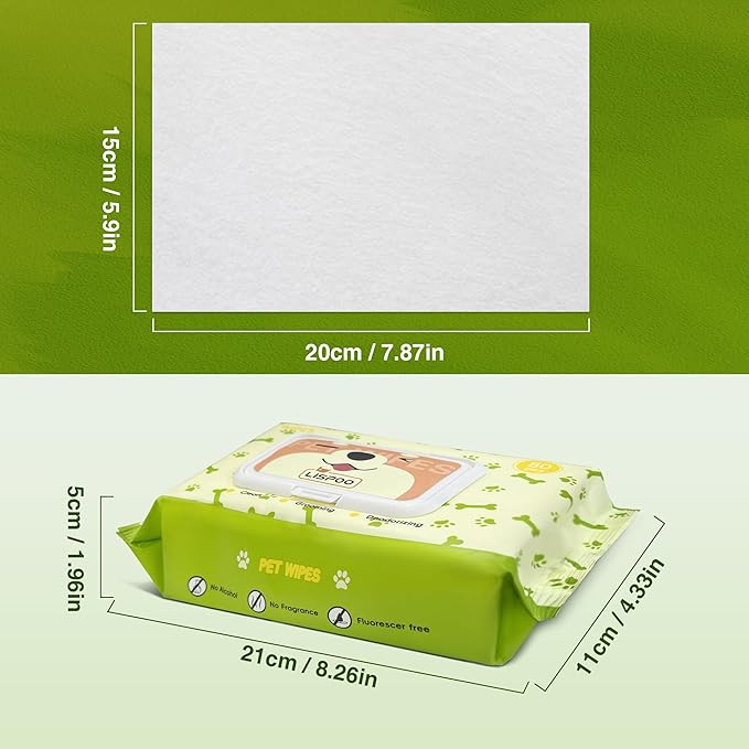 - Thick & Durable Wipes: Made with large sheets, these wipes are strong enough to handle tough messes while being gentle on your pet's skin