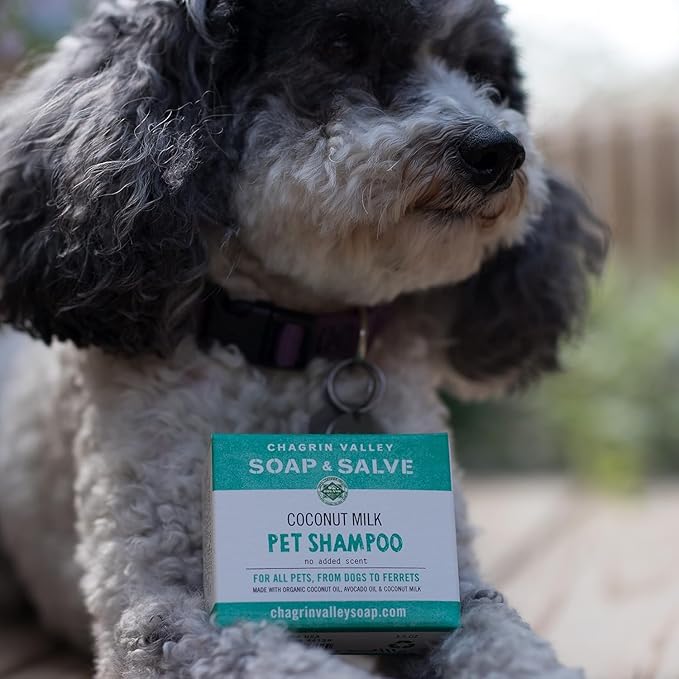Chagrin Valley Soap & Salve Organic Dog Shampoo and Conditioner - Puppy Shampoo Itchy Skin Relief and Puppy Essentials - Natural Handmade Cedarwood Lavender, 3.8 oz Bar Soap 3-PK