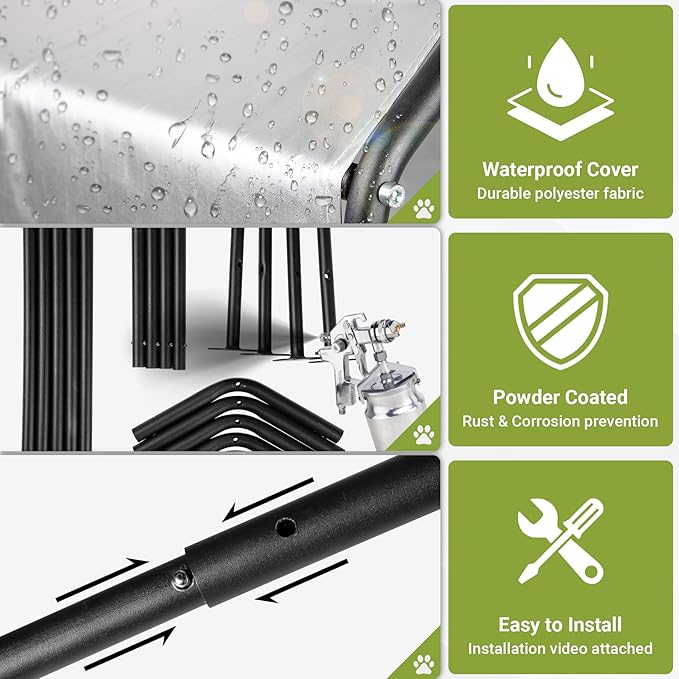 - Sturdy Construction: The frame of the pet shade is made of steel tubing with a powder coated finish that prevents the pet shade from rusting and corroding. It is strong enough to withstand any outdoor conditions for years to come