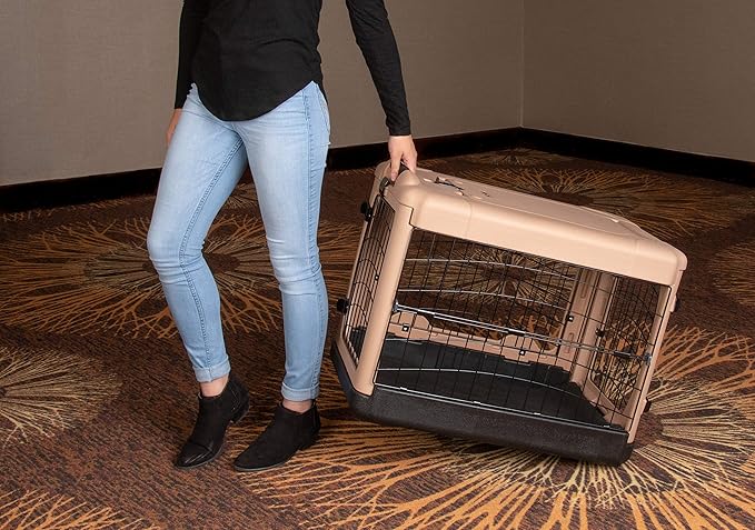 Pet Gear _he Other Door 4 Door Steel Crate for Dogs/Cats with Garage-Style Door, Includes Plush Bed + Travel Bag, No Tools Required, Beige