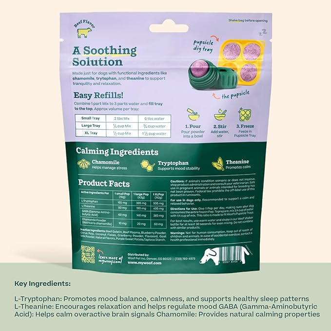 WOOF Dog Pupsicle Mix - Easy-to-Make DIY Pupsicle Refills - Tasty, Healthy Pupsicle Mix - Wholesome Ingredients - Long-Lasting - Calming Mix
